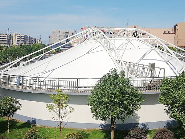 污水池膜結構由于其造型自由輕巧、阻燃、制作簡易、安裝快捷、節能、自潔性等優點,備受環保行業青睞。光滑...